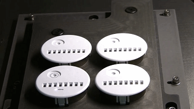 3、此时就可以进行激光雕刻了,利用激光技术和ID出的按键图做成的菲林(即为感光胶片,由PC/PP/PET/PVC料制作而成),雕掉上面白色油,比如加工字母"A",雕掉笔划上的白色,则下的或蓝或绿就露出来了,这样就形了各种颜色的字母按键了!