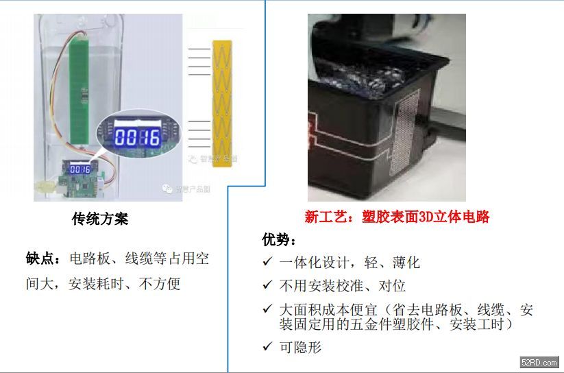 传统方式、与新工艺塑胶表面3D立体电路两种方式,下文对比两种方式进行说明: