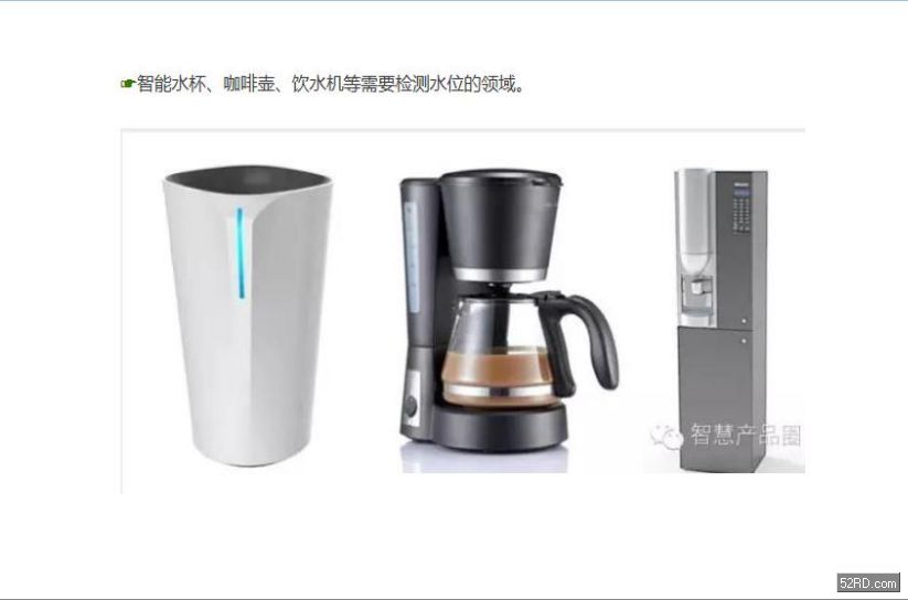 与其他液位检测手段相比,本应用不受限于液体类型,也不受环境温度变化影响,并且可以完成液体沸态检测等功能。可广泛应用于智能水杯、咖啡壶、饮水机等。